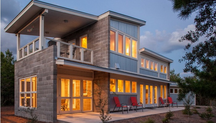 ลักษณะเป็นบ้านสองชั้น ผนังใช้อิฐบล็อค โชว์ความดิบเท่ ผสมผสานกับผนังเมทัลชีท สะท้อนความสวยงามออกมาในรูปแบบที่เรียบง่าย ส่วนประตู และหน้าต่างใช้กระจกใสสูงจากพื้นจรดเพดาน ช่วยให้บ้านดูไม่อึดอัด โปร่งสบาย และช่วยกระจายแสงจากภายนอกสู่ตัวบ้านได้ดีอีกด้วย