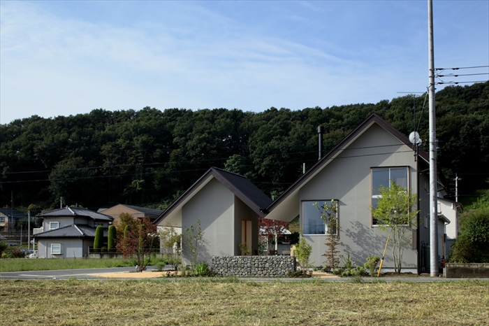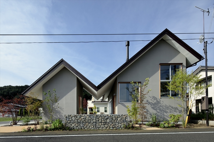 โดยบ้านหลังนี้ จะเป็นบ้านที่มีสองอาคาร เชื่อมต่อกันด้วยการออกแบบหลังคาทรงหน้าจั่วที่เชื่อมติดกันเอาไว้ ซึ่งเป็นงานออกแบบที่มีความเฉพาะตัว
