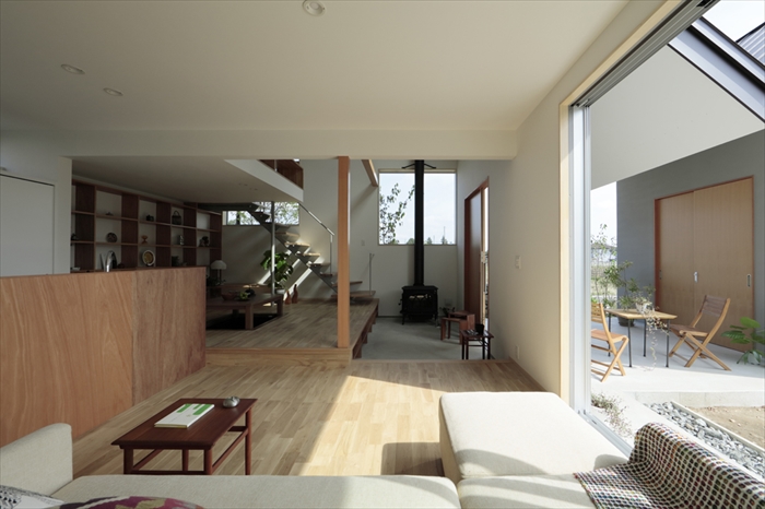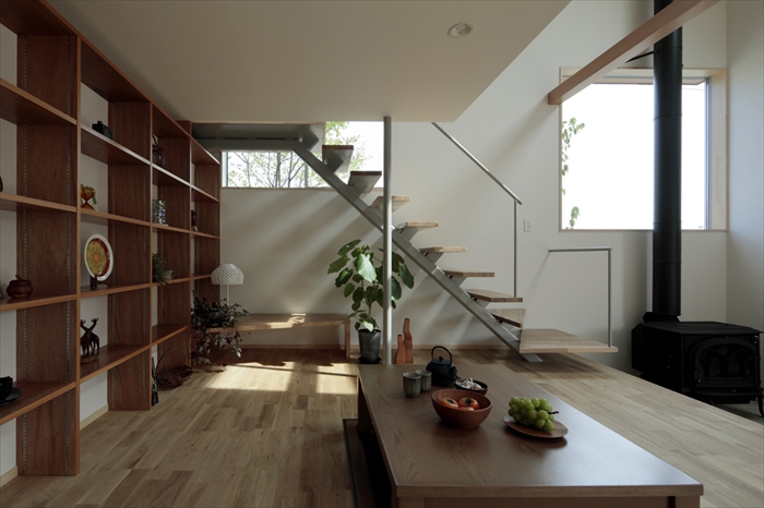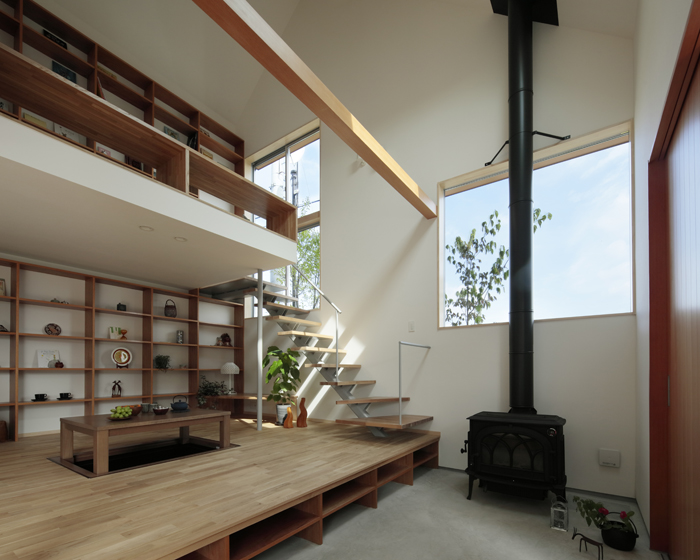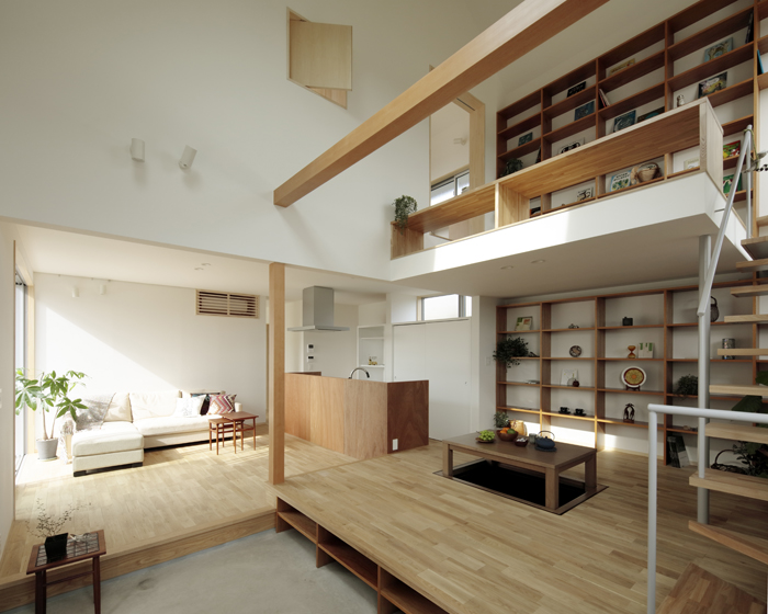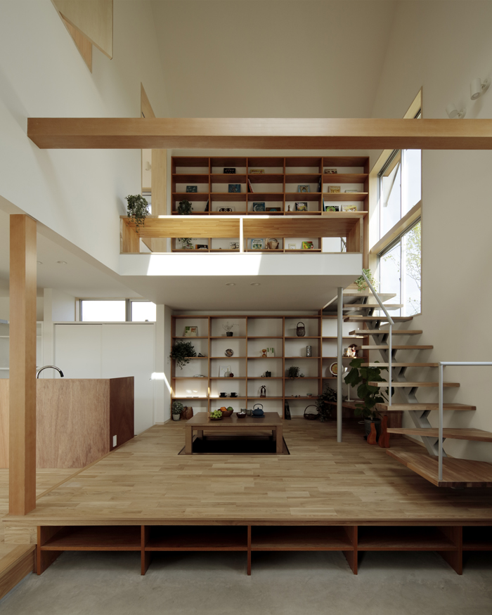ห้องโถงหลักของบ้าน ถูกตกแต่งด้วยสไตล์แบบญี่ปุ่น ซึ่งตรงกลางห้องจะตกแต่งด้วยโต๊ะญี่ปุ่น มีฉากหลังเป็นชั้นวางไม้ขนาดใหญ่