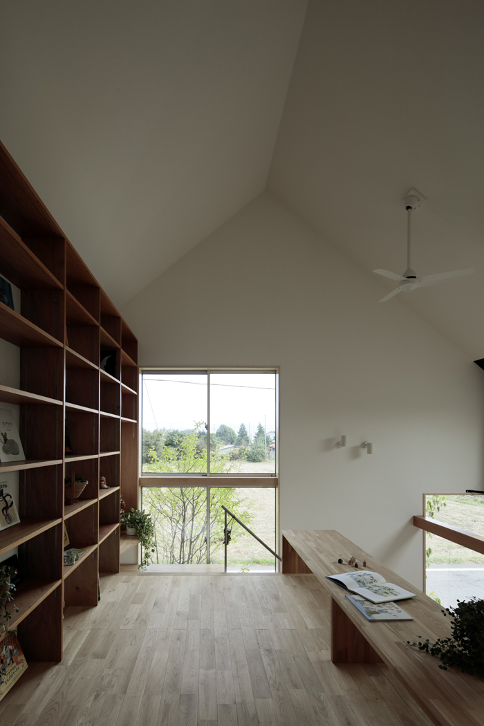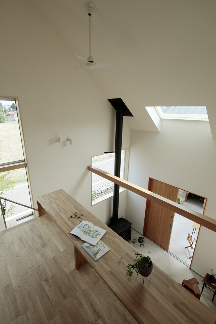 นอกจากนี้ บริเวณพื้นที่ชั้นลอยของบ้าน ยังออกแบบให้มีเคาน์เตอร์ยาวเล็ก ๆ เอาไว้อีกด้วย จึงสามารถใช้เป็นพื้นที่สำหรับนั่งอ่านหนังสือ หรือดื่มกาแฟได้เป็นอย่างดี