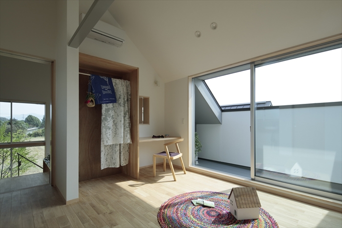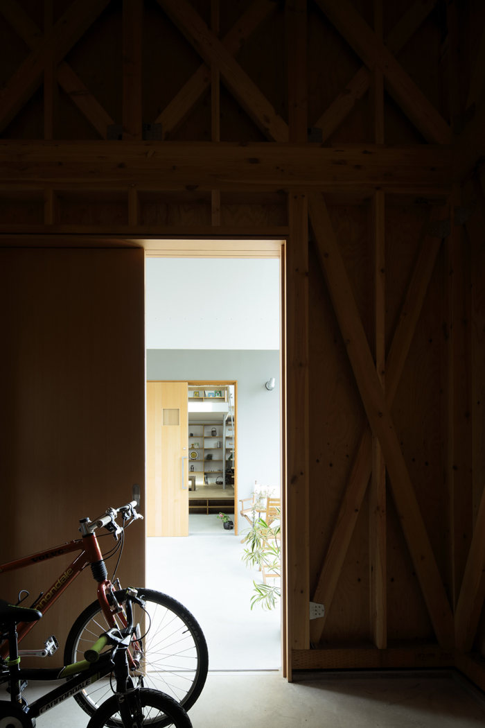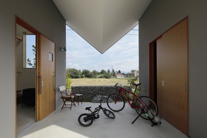 จุดที่หลังคาเชื่อมต่อกัน เป็นลานอเนกประสงค์เล็ก ๆ โดยที่อีกห้องนั้น คือ ห้องเก็บของขนาดใหญ่ที่สามารถใช้จัดเก็บสิ่งของชิ้นใหญ่ หรือพาหานะอย่างจักรยาน หรือมอเตอร์ไซค์ได้อย่างสบาย