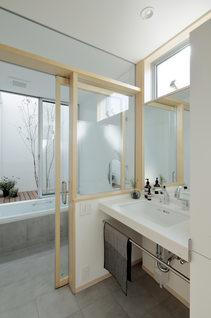 สำหรับห้องน้ำนั้น ถูกออกแบบและตกแต่งในโทนสีและบรรยากาศที่โปร่งและสว่าง ทั้งยังจัดวางพื้นที่ใช้สอยได้อย่างเป็นสัดส่วนอีกด้วย