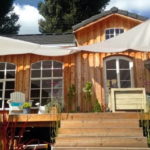 บริเวณด้านหลังออกแบบโปร่งโล่งด้วยผนังกระจกใสขนาดใหญ่ บริเวณเหนือสุดตั้งตั้งระแนงไม้ที่เพิ่มเอกลักษณ์ที่โดดเด่นของบ้าน