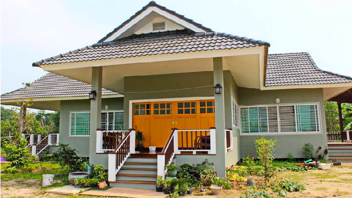 ลักษณะบ้านขนาดชั้นเดียว ออกแบบยกพื้นสูง ดีไซน์ตัวบ้านอย่างสวยงาม โดดเด่นด้วยทางเข้าหลายทาง ผนังภายนอกตกแต่งด้วยโทนสีเขียวอ่อน โดดเด่นและมีเอกลักษณ์ด้วยประตูบ้านในโทนสีเหลืองสดใส หลังคาของบ้านออกแบบด้วยหลังคาทรงหน้าจั่ว มุงด้วยกระเบื้องลอน