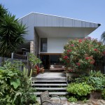บริเวณภายนอก ตกแต่งด้วยสีขาว หลังคาสีแดงดูเด่นชัดบนเกาะกลางทะเล บริเวณรอบตัวบ้านเต็มไปด้วยพืชสีเขียว ดูร่มรื่นสบายตา ทางเข้าบ้านต้องใช้สะพานแขวน นับได้ว่ามีความเป็นส่วนตัวสุดๆสำหรับบ้านหลังนี้