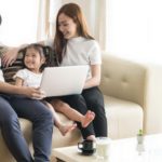 ห้องครัวออกแบบในสไตล์โมเดิร์น ผนังห้องด้านซ้ายเรื่องใช้สีฟ้าที่ช่วยให้ห้องครัวดูสว่างยิ่งขึ้น เคาน์เตอร์ครัวเลือกใช้เคาน์เตอร์รูปทรงยาวแบบติดผนัง