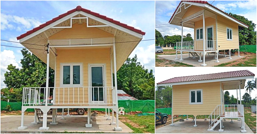 สำหรับบ้านหลังนี้เป็นบ้านชั้นเดียว โครงสร้างของบ้านเป็นโครงสร้างเหล็ก จึงก่อสร้างบ้านได้อย่างรวดเร็ว โดยฐานของบ้านจะถูกยกขึ้นสูง เพื่อสะดวกต่อการขนย้ายและติดตั้ง สำหรับการตกแต่งนั้น ภายนอกจะเป็นผนังไฟเบอร์ซีเมนต์ที่ตกแต่งด้วยโทนสีครีม