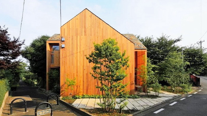ลักษณะบ้านขนาดสองชั้น ผนังภายนอกตกแต่งด้วยงานไม้ทั้งหลังเนื้อไม้ให้ความเรียบง่ายไม่เน้นรายละเอียดปลีกย่อย ให้โทนสีน้ำตาลอ่อน สร้างบรรยากาศที่อบอุ่นสบายตา