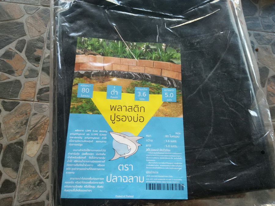 2. ผ้างยางปูพื้นบ่อ ขนาด 5 เมตร x 3.6 เมตร x 80 ไมครอน ราคา 195 บาท (Lazada)