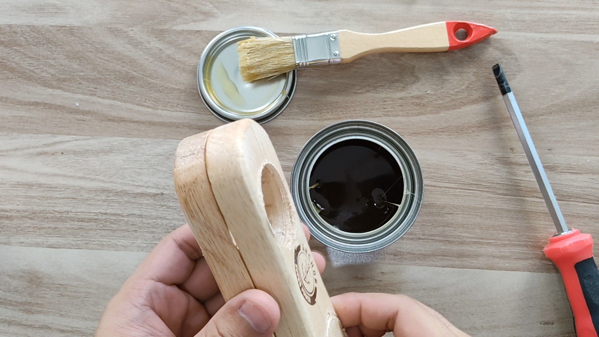 4. จากนั้นทำการทากาวแปรงทั้ง 2 ชิ้นให้ติดกัน ผมใช้ซีเเคมหนีบต่อให้แน่น