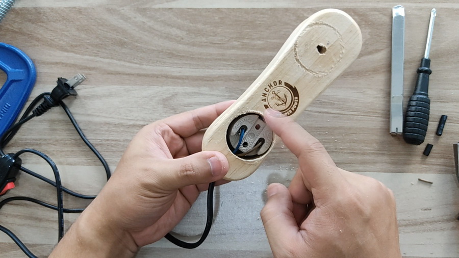5. ด้านข้างเจาะด้วยสว่านเพื่อใช้สอดสายไฟ