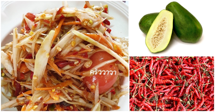1. ตำพริกกระเทียมใส่มะละกอซอย