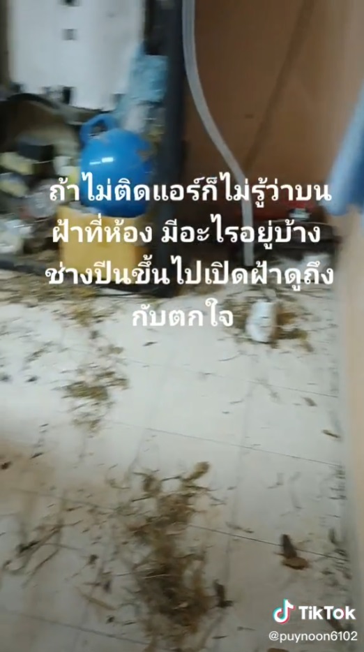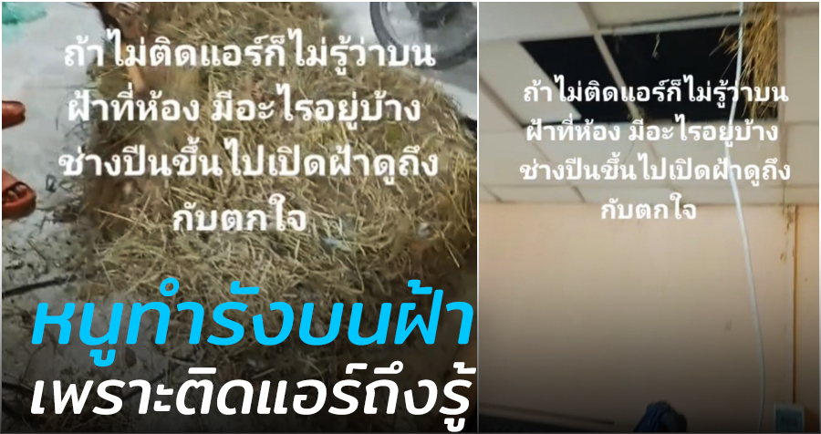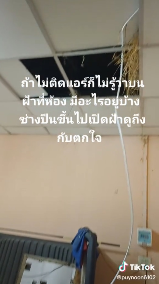 อย่างล่าสุด ผู้ใช้บัญชีติ๊กต่อก @puynoon6102 ได้โพสต์คลิปสั้น ที่เผยให้เห็นว่ามีหญ้าแห้งจำนวนหนึ่งอยู่เต็มภายในฝ้า ซึ่งคาดว่าอาจจะมาจากฝีมือของหนูนั่นเอง