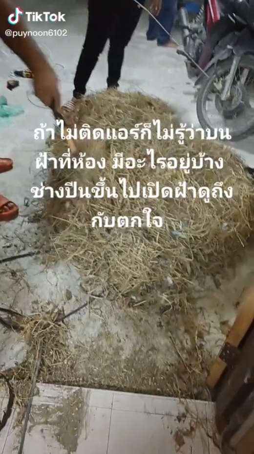 ช่างที่เปิดฝ้าขึ้นไปเพื่อจะเดินสายไฟ ต้องตกใจเมื่อพบกับรังจากหญ้าพวกนี้