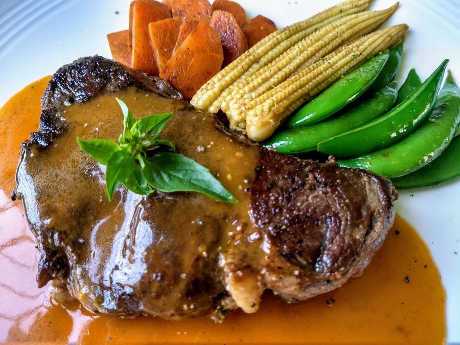 เนื้อสันในสุกแบบ medium rare มีความฉ่ำของเนื้อผสานกับความนุ่มในแบบของสันใน ราดด้วยบรานว์ซอสรสหอมมันกลมกล่อม มีผักผัดเนยหอมๆเนื้อสัมผัสกรอบๆฉ่ำๆค่อยกินแนมตัดความเลี่ยน
