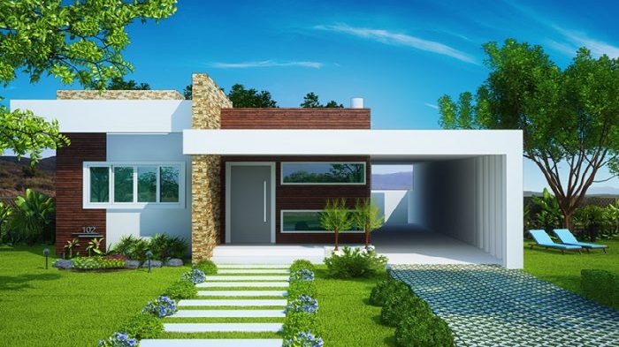 Fortaleza ลักษณะบ้านชั้นเดียวที่ออกแบบด้วยรูปทรงที่ทันสมัย โครงสร้างของบ้านเป็นคอนกรีตและวัสดุสมัยใหม่ ภายนอกตกแต่งด้วยโทนสีที่หลากหลาย ได้แก่ สีขาวสำหรับโรงจอดรถ สีน้ำตาลสำหรับผนังตัวบ้าน และสีหินธรรมชาติจากการตกแต่งเพิ่มเติม