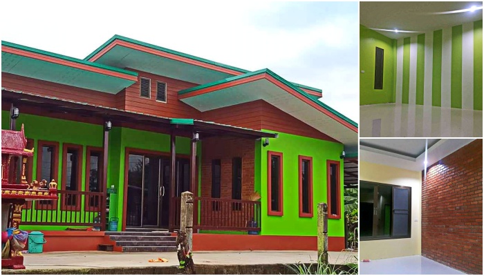 บ้านหลังนี้ก่อสร้างขึ้นที่จังหวัดอุดรธานี มาในรูปแบบของบ้านชั้นเดียวหน้ากว้าง ผนังก่ออิฐฉาบปูนแต่งแต้มด้วยโทนสีเขียวนีอ่อนสว่าง เพิ่มลูกเล่นด้วยผนังอิฐโชว์แนวสีเข้ม โดดเด่นด้วยหลังคามุงเมทัลชีททรงเพิงหมาแหงนเล่นระดับ พร้อมกรุช่องระบายอากาศช่วยลดความร้อนภายในตัวบ้าน