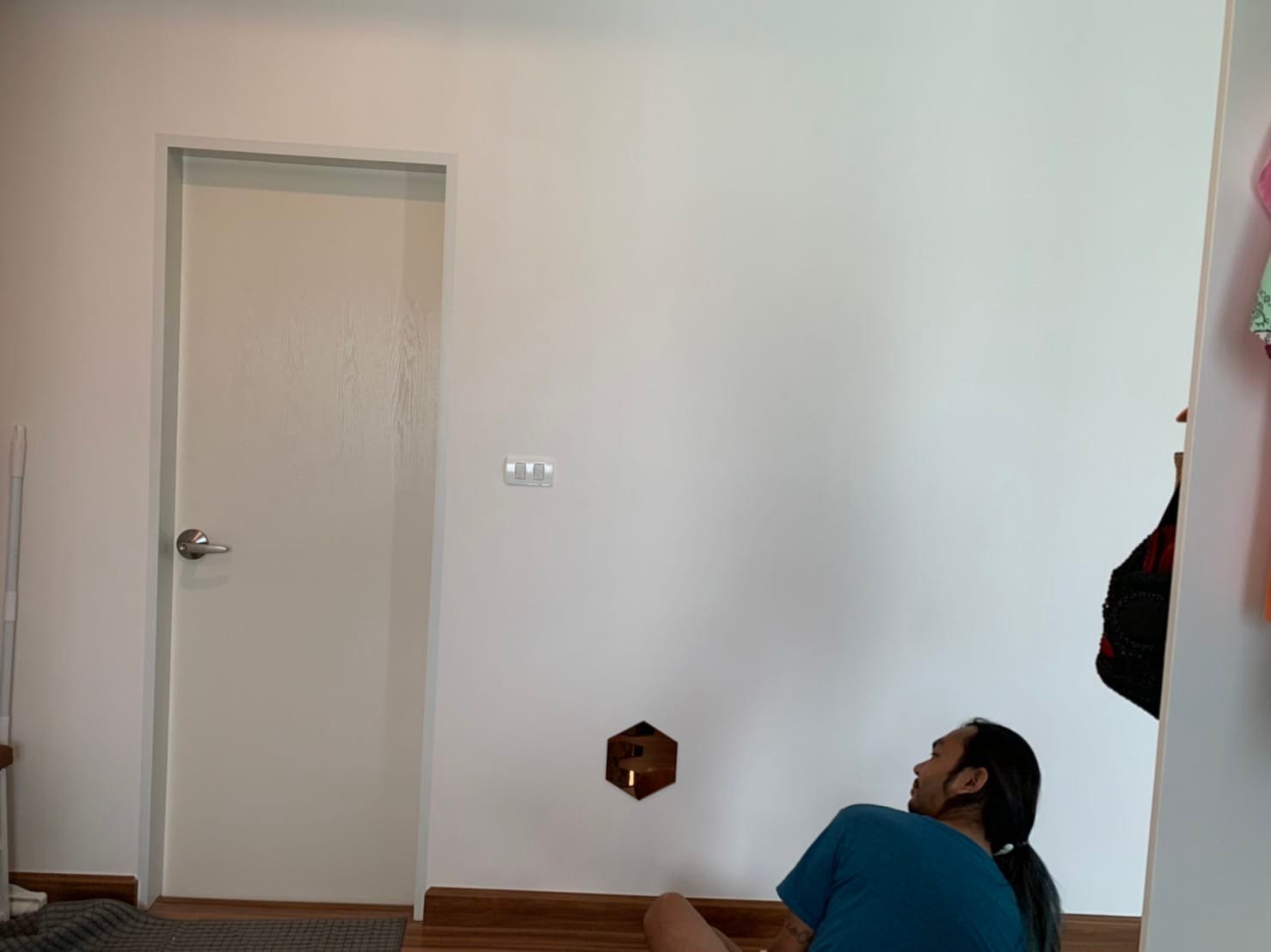 จากนั้นก็นำเอามาติดกับผนังด้วยตัวเอง โดยออกแบบและจัดตำแหน่งตามใจเลย ซึ่งก็ออกมาสวยและมีสไตล์ที่ไม่เหมือนใคร