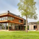ขณะที่ตัวบ้านสองชั้น ออกแบบบนแนวคิดร่วมสมัย โดยใช้วัสดุโครงสร้างไม้ของบ้าน ร่วมกับผนังกระจกในทุกๆด้าน นั่นทำให้ตัวบ้านโปร่งโล่ง รับแสงได้เต็มที่และรู้สึกเป็นอันหนึ่งอันเดียวกับภายนอก คนที่อยู่ก็ไม่รู้สึกอึดอัด