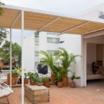 บ้านโครงสร้างเหล็ก ออกแบบแปลนและรูปทรงที่เรียบง่าย รูปทรงกล่องสี่เหลี่ยม แนวยาว ผนังสีขาวล้วนจากวัสดุปิดผิว จากแผ่นไม้ ตกแต่งด้วยช่องแสงช่องเปิดกระจกบานใหญ่ สร้างจังหวะให้บ้านมีมิติมากขึ้น