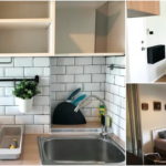 ส่วน Double height เป็นวัสดุฟลอยสะท้อน ไม่โอเคมากๆ ทาสีเขียวทับและเรียงไม้รวกปิดเสียครับ ขึ้นเคาเตอร์ เดินระบบไฟท่อ EMT ปูโมเสค เลือกคำที่สิ้นคิดที่สุด Hello! เยี่ยมครับ Creativity เอาไป 1/10 ส่วนเขียวแรกที่ไม่ผ่าน ผมเลยเอาเขียวที่เข้มกว่าสองเบอร์มาทาทับ ซึ่งก็ยังไม่ผ่านอยู่ดี ไม่เป็นไร ใกล้แล้ว