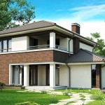 สวยโมเดิร์นที่เรียบง่าย หน้าบ้านโครงสร้างคอนกรีต ตกแต่งในฟอร์มเหลี่ยมๆ น่ามองมาก เน้นไฟที่ส่องจากหน้าต่างเป็นจุดๆไฮไลท์ ดูอบอุ่นและน่าสนใจมาก หลังคาปั้นหยา มาพร้อมกับระเบียงไม้ชั้น 2 อิฐโชว์แนวกับผนังสีเทา เข้ากันเป็นหนึ่งได้ดี
