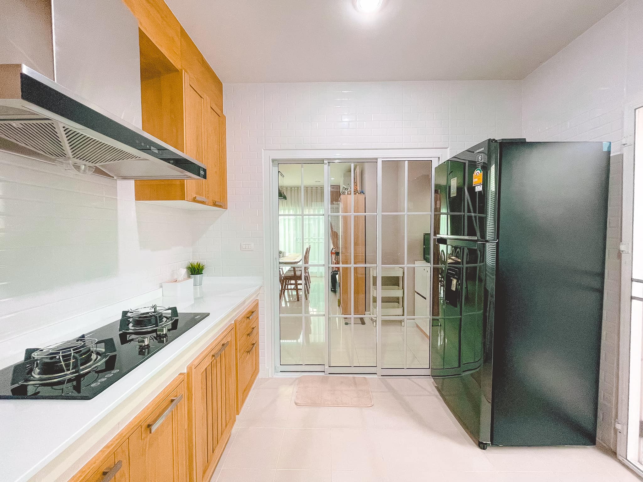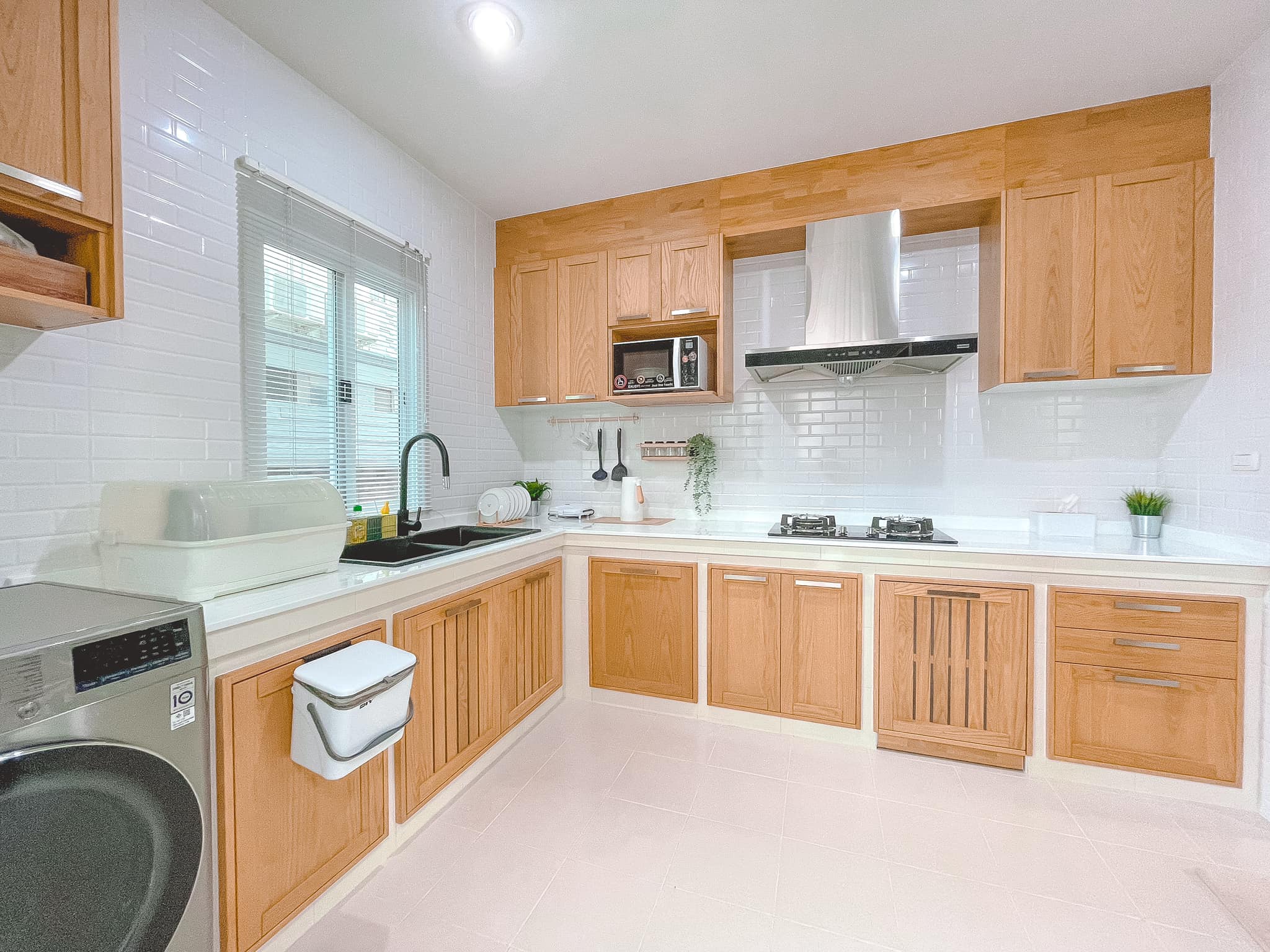 ภายในห้องครัวจะมีพื้นที่ให้ใช้สอยอย่างกว้างขวาง ภายในห้องยังคงมีการตกแต่งที่คุมโทนและคุมธีมการตกแต่งแนวมินิมอลเอาไว้