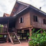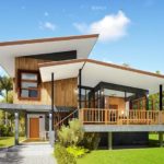 ในส่วนของด้านหลังบ้าน ยกระดับพื้นโดยการปูแผ่นทางเดินไม้เทียม ส่วนพื้นชั้นล่างถูกเปลี่ยนให้เป็นบ่อน้ำตกขนาดย่อม ราวกับยกธรรมชาติและป่าเขามาไว้ภายในบ้าน