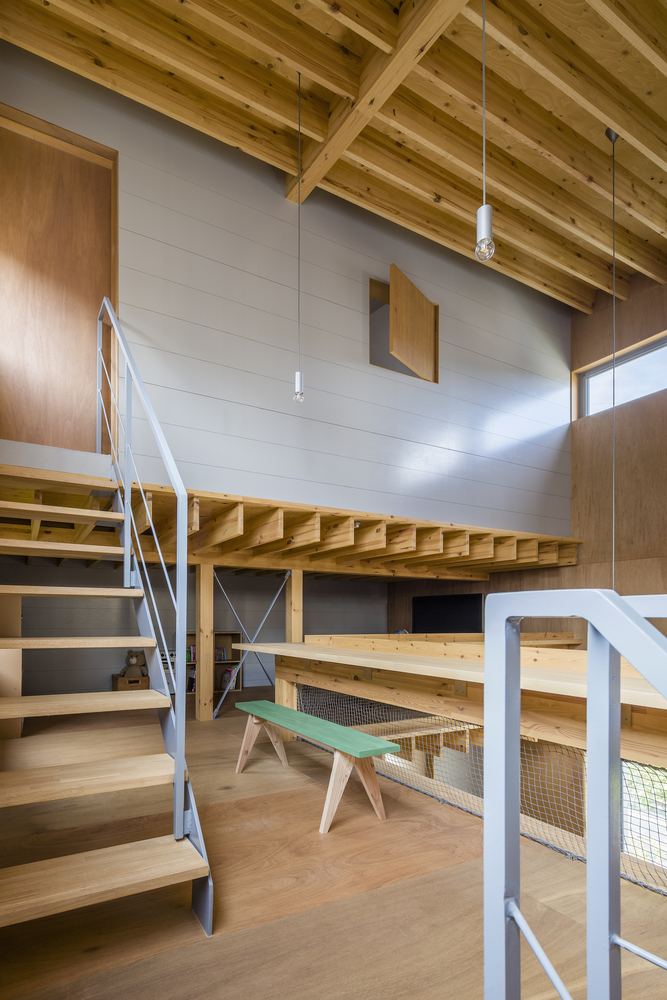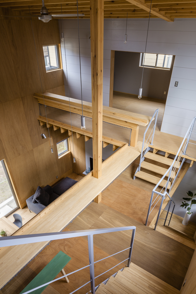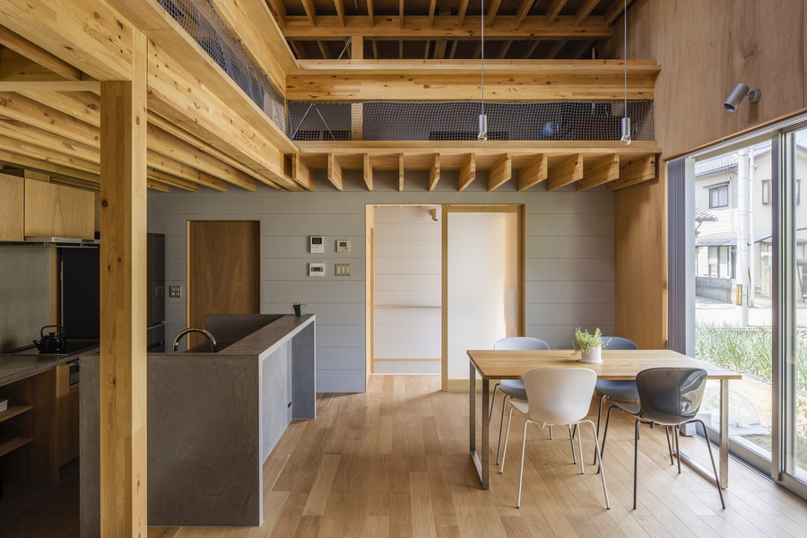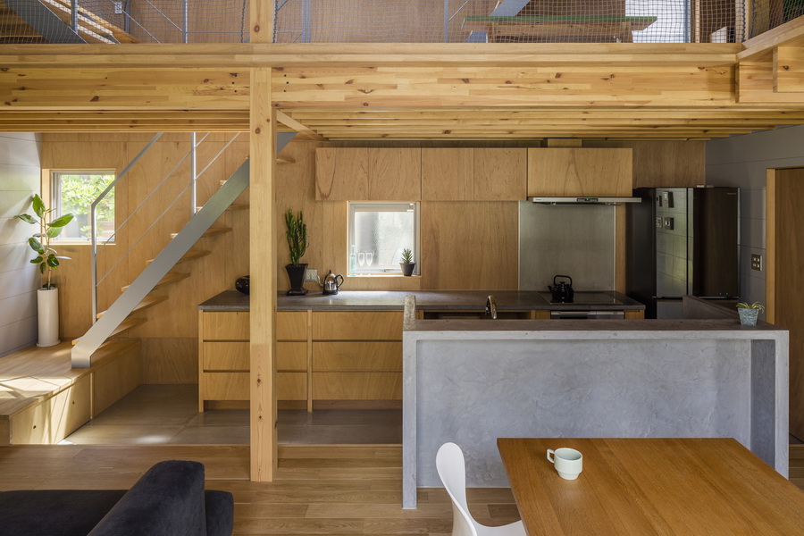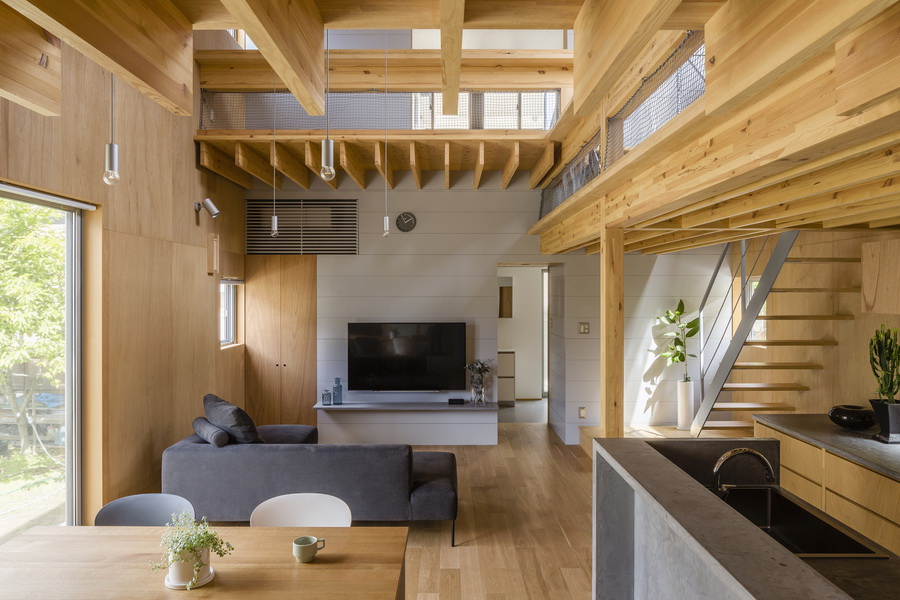 สถาปนิกได้เลือกวัสดุ ‘ไม้’ เป็นองค์ประกอบหลักสำหรับการตกแต่งภายใน พร้อมทั้งเน้นดีไซน์ที่เผยให้เห็นโครงสร้างภายในมากที่สุด เพื่อให้ผู้อยู่อาศัยได้สัมผัสกับความอ่อนโยนและความเข็มแข็งของงานไม้ไปพร้อมๆ กัน