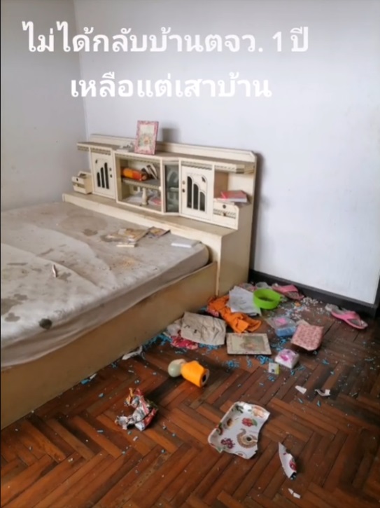 ซึ่งหญิงสาวรายนี้ได้ให้ข้อมูลเพิ่มว่า เธอไม่ได้กลับบ้านหลังนี้มาราว ๆ 1 ปี เมื่อกลับมาแล้วก็พบว่าบ้านอยู่ในสภาพอย่างที่เห็นเลย