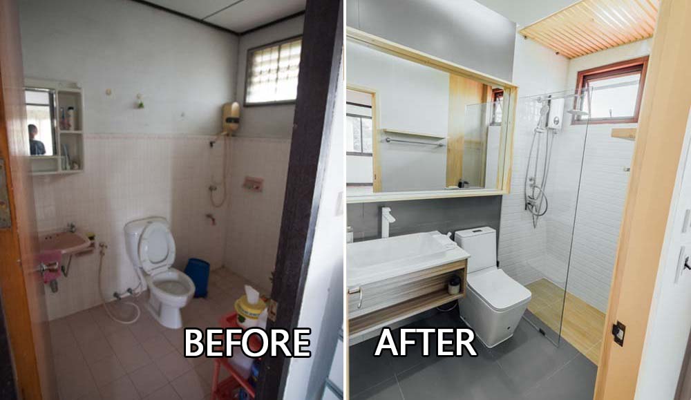 ความรู้สึกแรกที่ได้เห็นห้องน้ำใหม่ในสไตล์ Modern Japanese คือ ห้องน้ำเรียบๆ โทนสีขาวที่สว่างสบายตา ที่ให้กลิ่นอายอบอุ่นจากการใช้ลายไม้มาประกอบ เห็นถึงการแบ่งโซนที่ชัดเจนระหว่างโซนเปียกและโซนแห้ง จัดวางสุขภัณฑ์ตามความถี่ในการใช้งาน คือ เมื่อเปิดประตูเข้ามา จะเจอกันอ่างล้างหน้าและกระจกเป็นอันดับแรก เพราะเป็นสิ่งที่ใช้บ่อยที่สุด ถัดไปคือโถสุขภัณฑ์ และท้ายสุดคือโซนอาบน้ำ ที่ใช้วันละ 2 ครั้ง