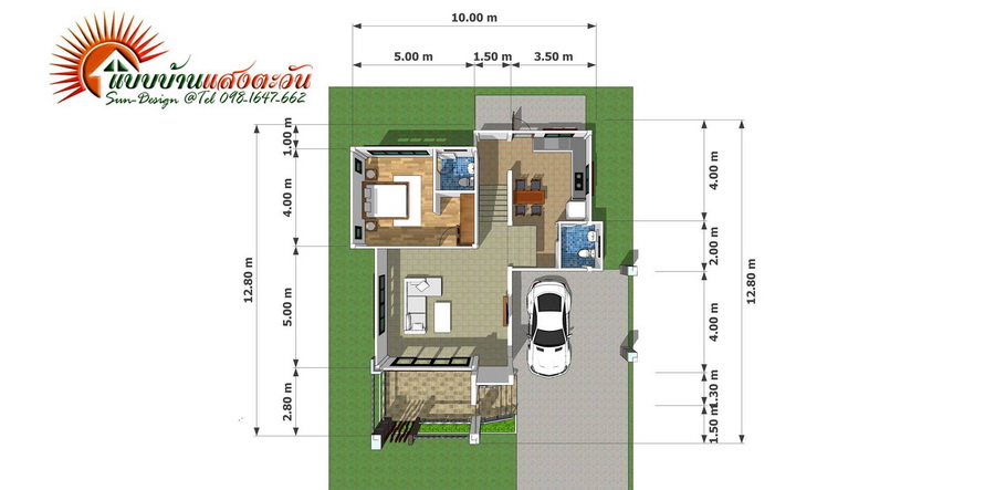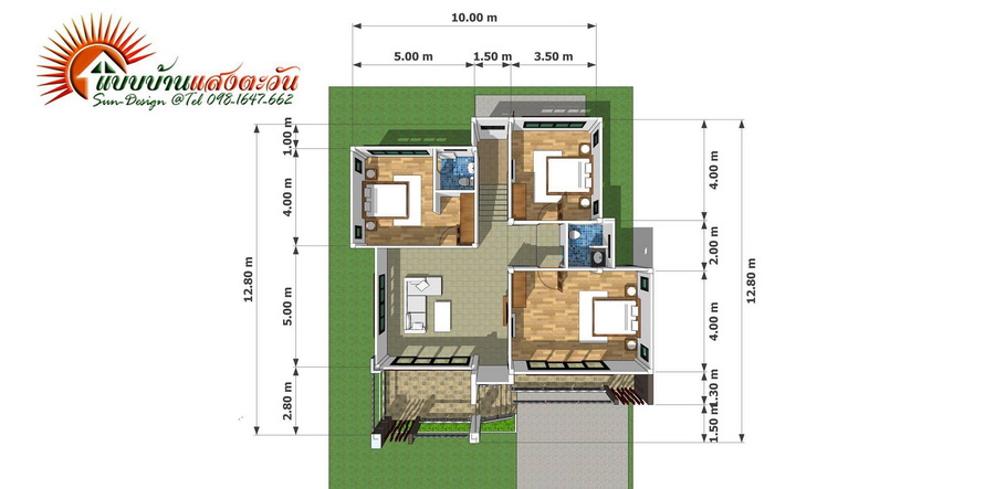แบบบ้านหลังนี้ประกอบไปด้วย 3 ห้องนอน 3 ห้องน้ำ บนพื้นที่ใช้สอยทั้งหมด 168 ตารางเมตร งบประมาณก่อสร้าง 1.7 – 1.8 ล้านบาทครับ หากเพื่อนๆ ชาวเว็บสนใจรายละเอียดเพิ่มเติมเกี่ยวกับแบบแปลนฉบับนี้ สอบถามข้อมูลเพิ่มเติมได้จากช่องทางด้านล่างนี้เลยนะครับ