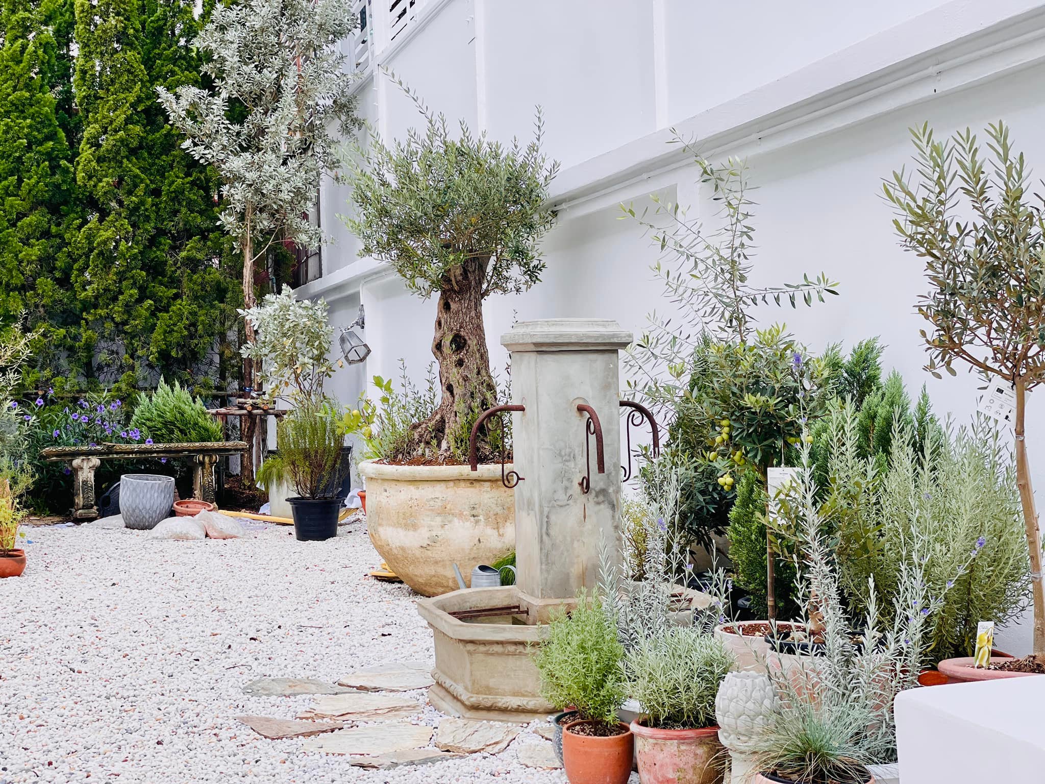 ต้นมะกอกเมดิเตอร์เรเนียนที่ให้กลิ่นอายของยุโรปตอนใต้ได้อย่างชัดเจน