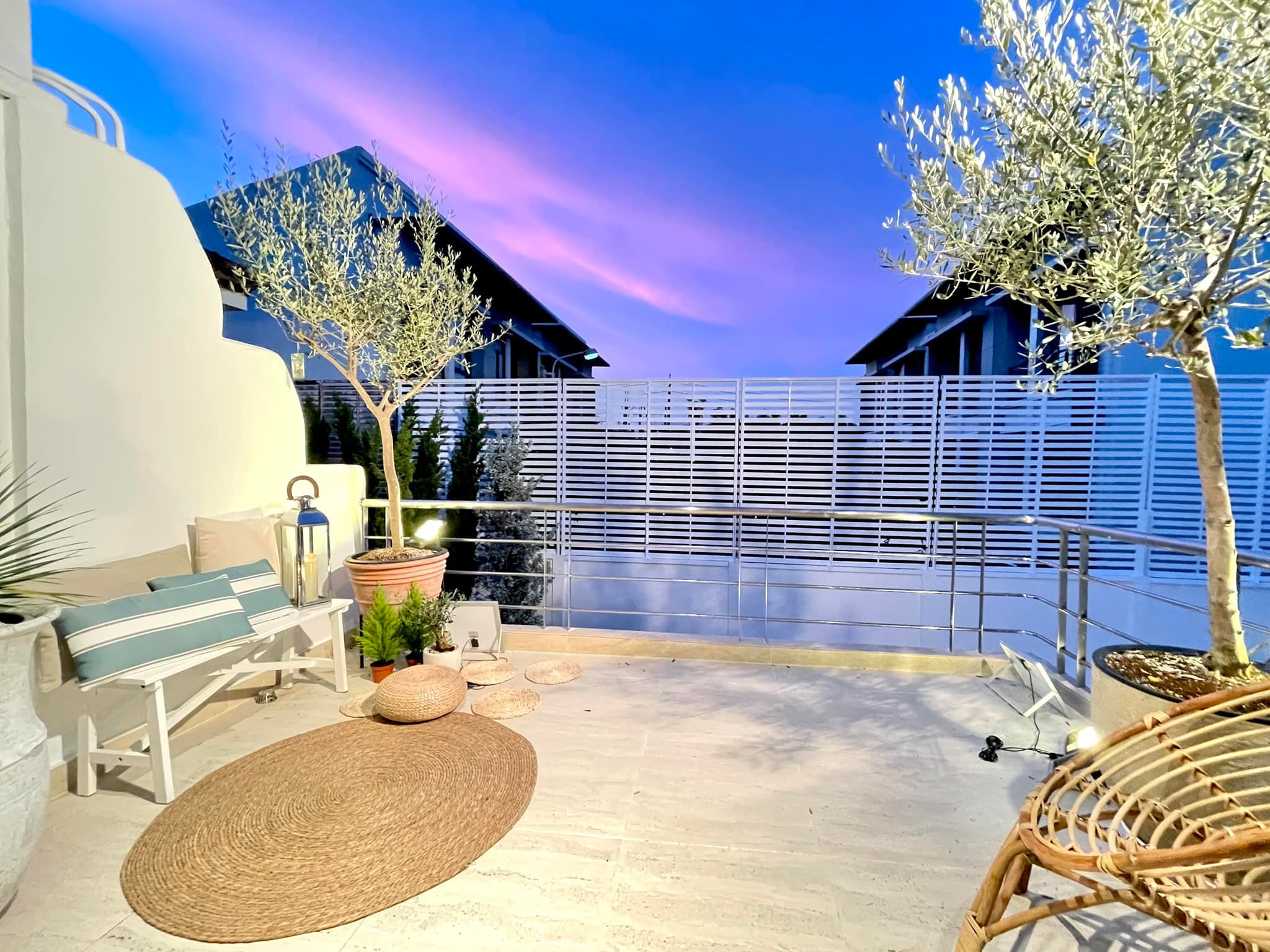 ด้านบนเรือนกระจก จะมีพื้นที่ดาดฟ้าที่ตกแต่งให้เป็นมุมนั่งเล่นกลางแจ้ง จึงเหมาะกับการออกมานั่งชมบรรยากาศของสนยามเย็นได้เป็นอย่างดี