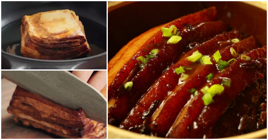 1. ใส่หมูสามชั้น พร้อมกับขิงลงในหม้อ เติมน้ำต้มสุกประมาณ 15 นาที จนเนื้อสุกเต็มที่