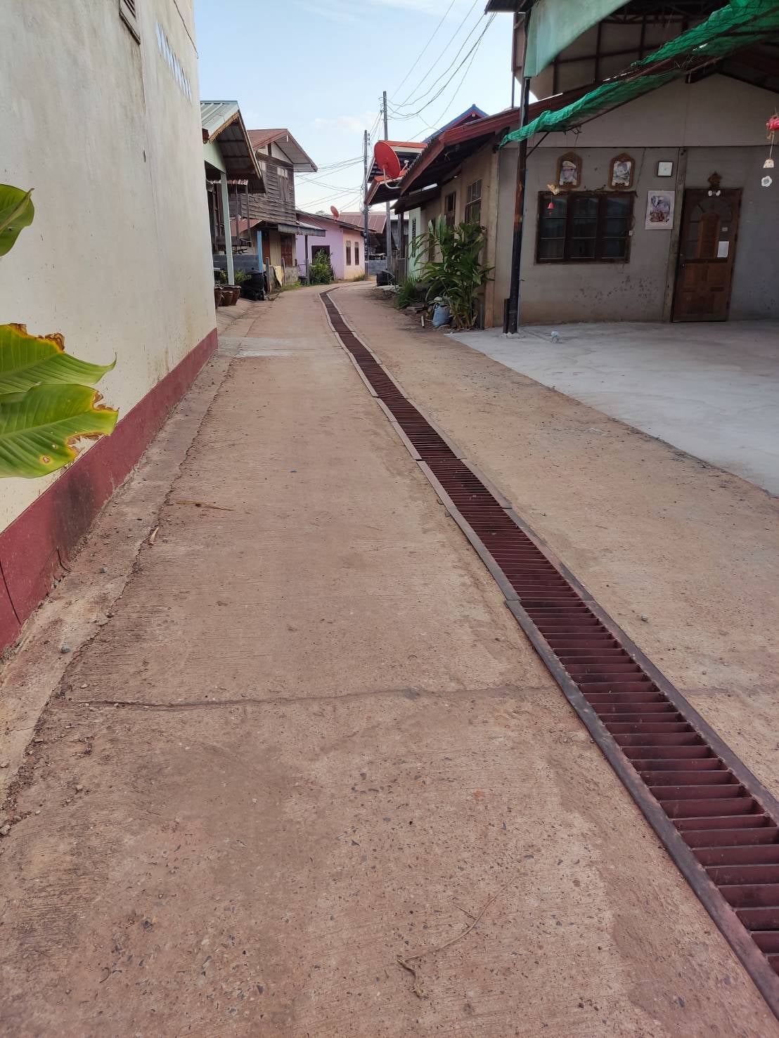 เนื่องด้วยสภาพถนนของชุมชนแห่งนี้ เราจะเห็นได้ว่ามีขนาดที่ค่อนข้างแคบ ประมาณรถยนต์คันเดียวได้เลย ซึ่งถ้าหากเราวางท่อแบบให้อยู่ด้านใดด้านหนึ่ง หรือวางแบบคู่ขนานก็อาจจะทำให้ระบายน้ำได้ไม่มีประสิทธิภาพ