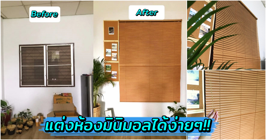 มูลี่ลายไม้ กับคู่กับบอร์ดไม้อัดและต้นไม้เล็ก ๆ แค่นี้ก็เปลี่ยนห้องที่แสนน่าเบื่อให้กลายเป็นห้องมินิมอลแสนน่ารักได้แล้ว