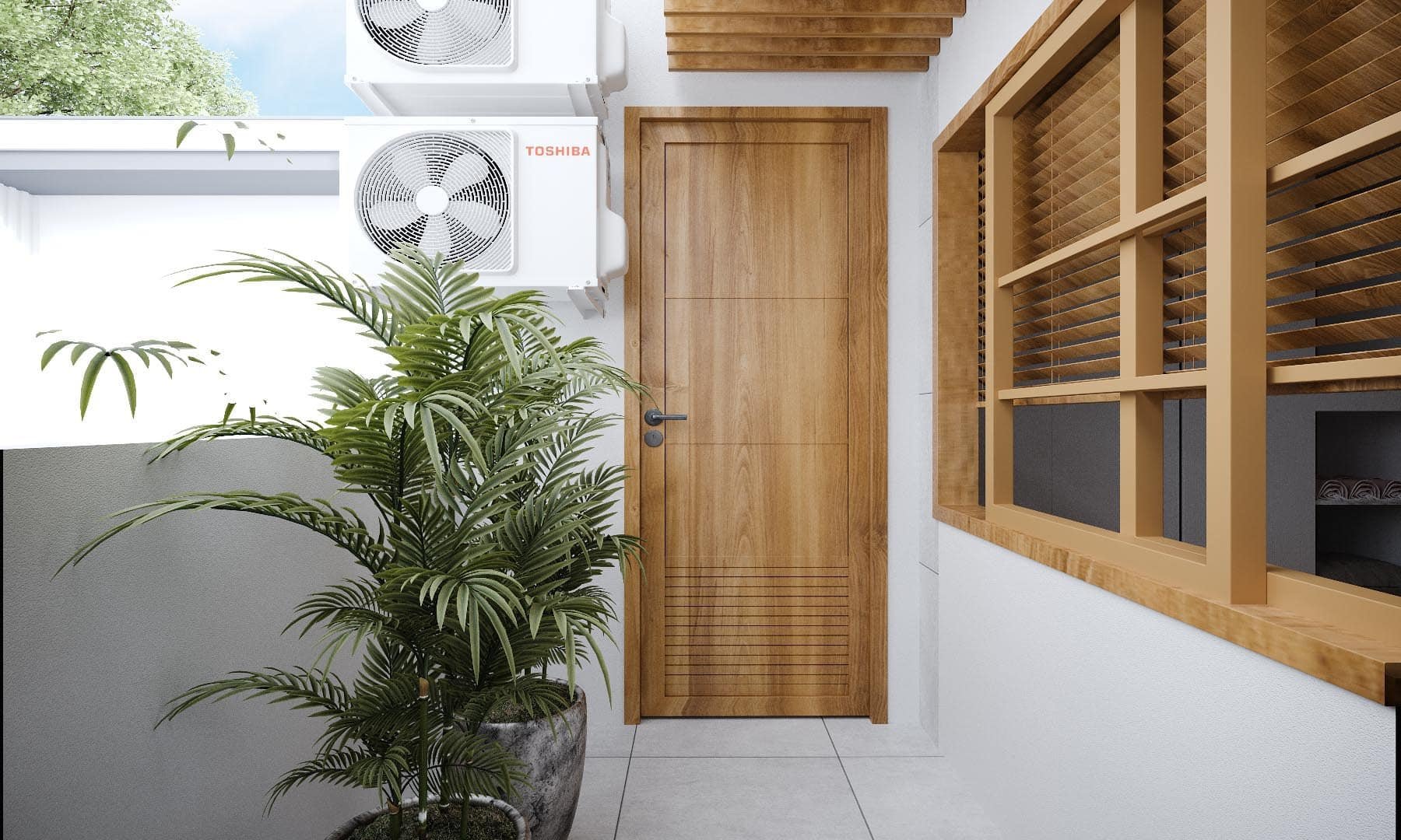 เพื่อให้บ้านดูมีความกว้างและไม่อึดอัดจนเกินไป จึงได้ปล่อยให้หลังบ้านมีพื้นที่โล่งเอาไว้ ทำให้สามารถออกมาใช้งานพื้นที่ส่วนนี้ได้ด้วย
