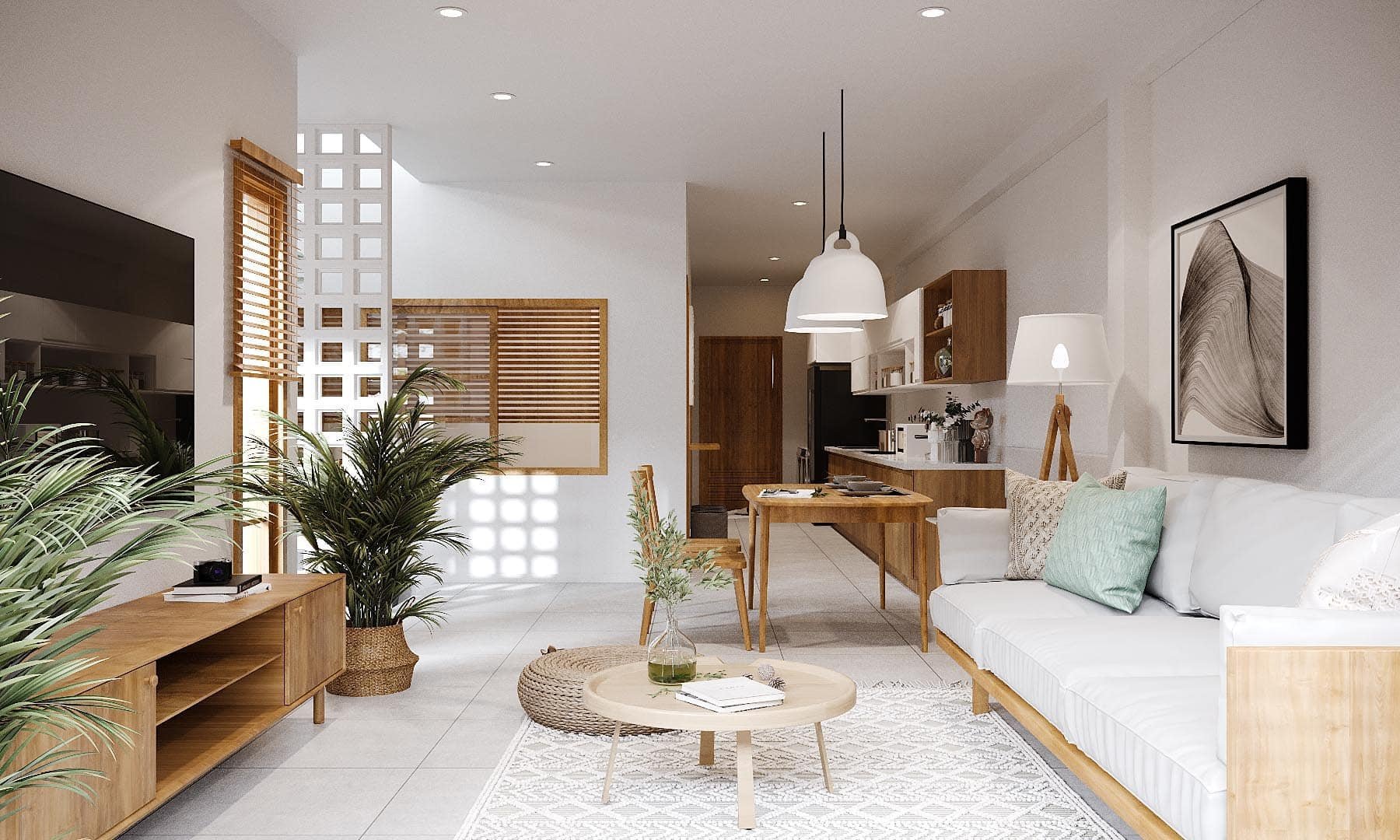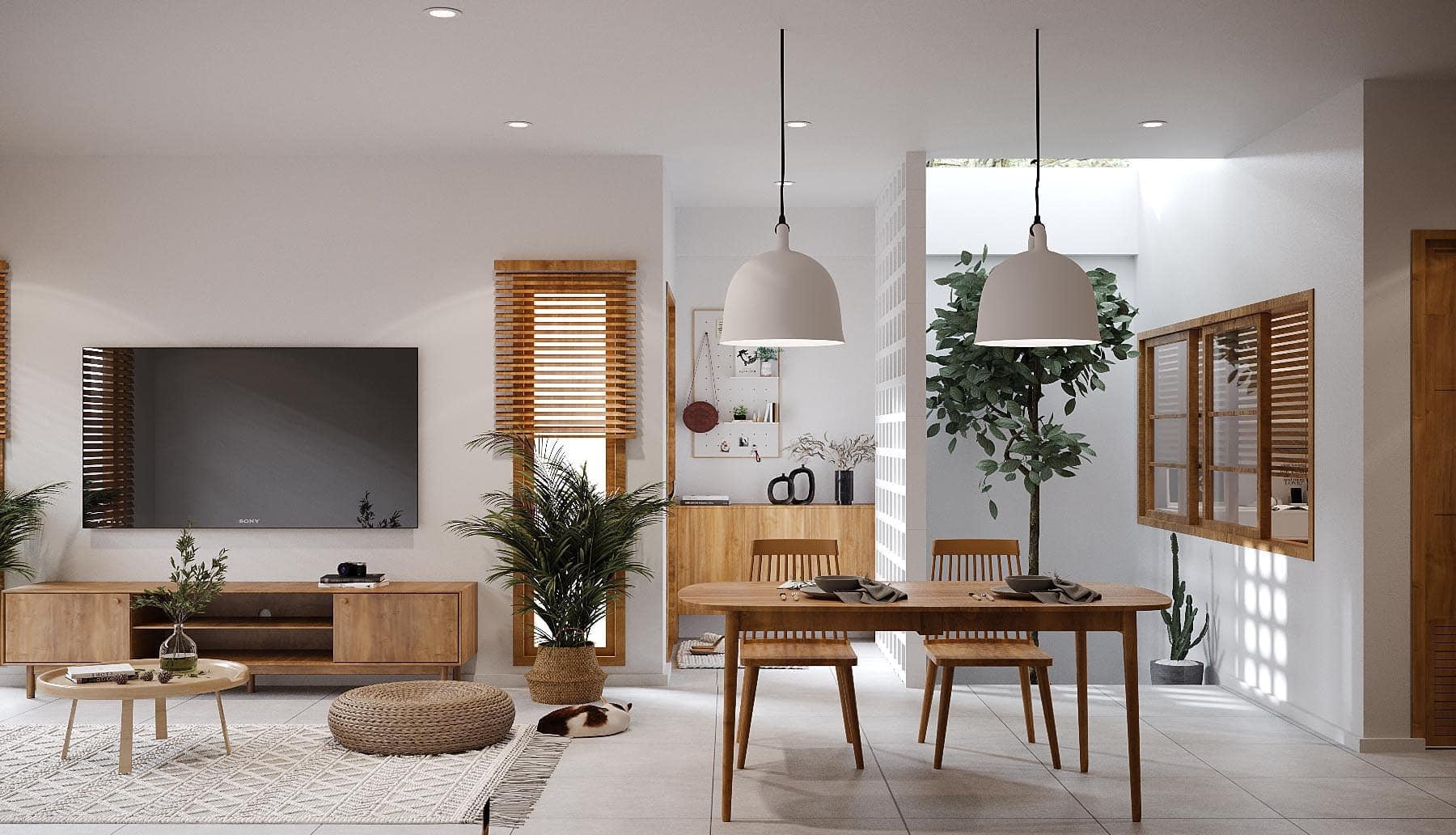 เฟอร์นิเจอร์ที่ใช้ตกแต่งบ้าน จะเป็นแบบสีเอิร์ธโทน รวมถึงเป็นงานไม้ จึงให้กลิ่นอายแบบมินิมอลได้อย่างชัดเจนและสวยงาม
