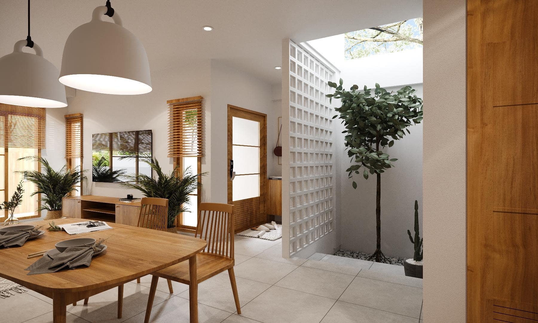 การออกแบบพื้นที่ภายในบ้าน จะเน้นให้พื้นที่มีความโปร่ง สามารถรับแสงได้ดี เพื่อชดเชยขนาดของตัวบ้านที่มีขนาดไม่ใหญ่มากนัก