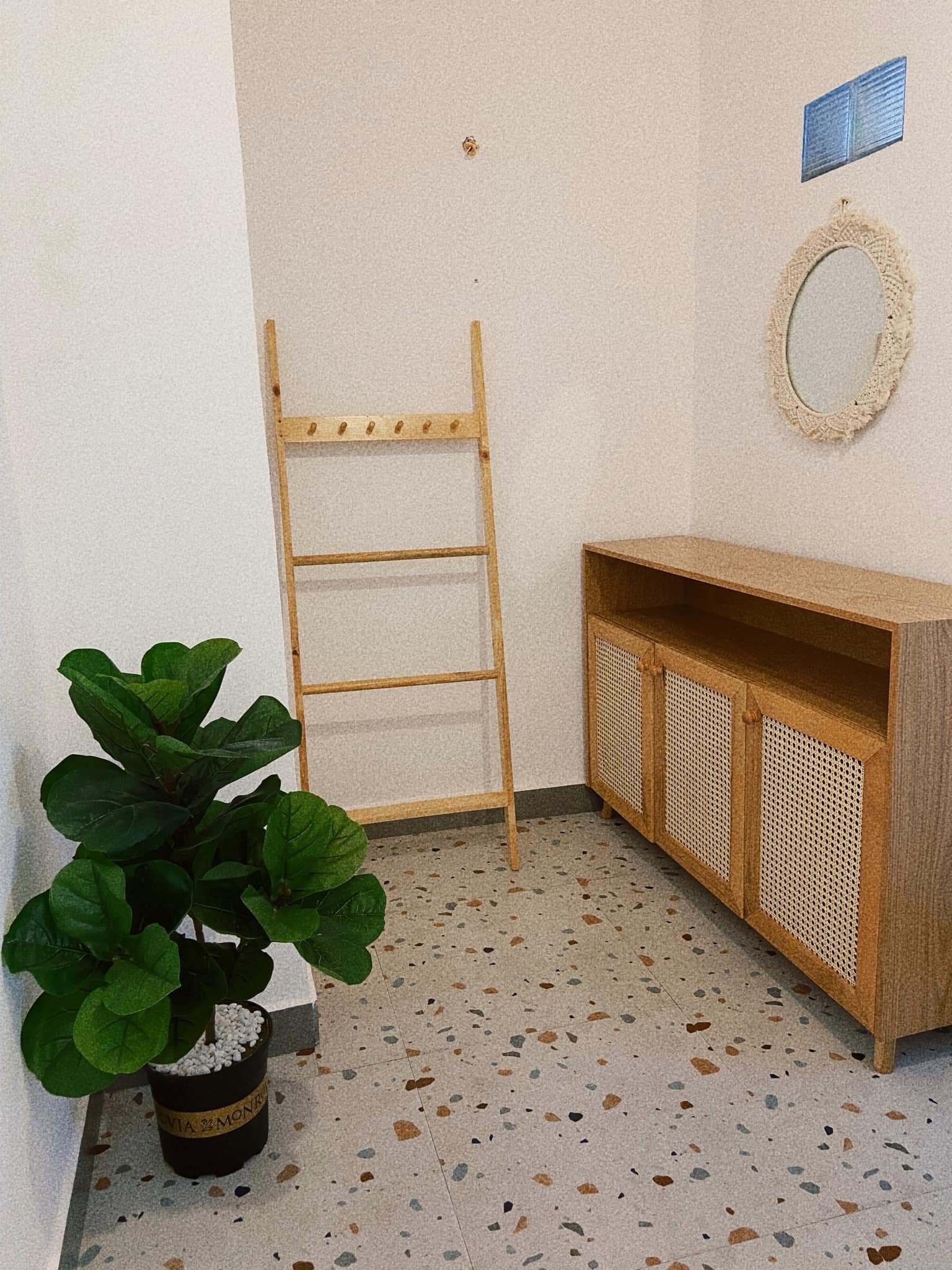 มุมนี้เป็นโถงหน้าห้องน้ำที่ถูกจัดเป็นมุมอเนกประสงค์ โดยจะมีทั้งอ่างล้างมือ ตู้เก็บของ แม้กระทั่งเปลญวนที่สามารถมานอนเล่นที่บริเวณนี้ได้