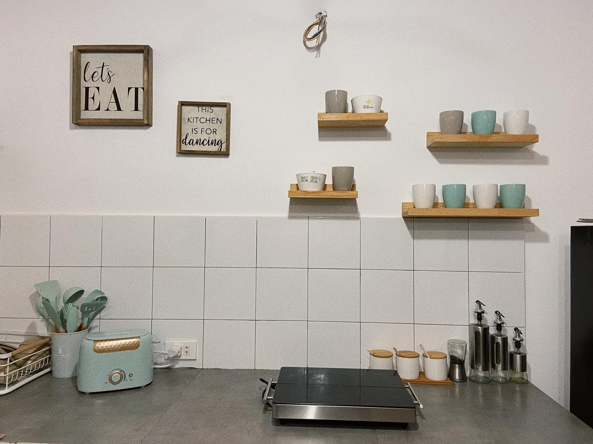 ภายในห้องครัวเป็นเคาน์เตอร์แบบง่าย ๆ เครื่องครัวและเครื่องใช้ไฟฟ้าต่าง ๆ จะมาในรูปแบบและโทนสีแบบพาสเทล ซึ่งก็เข้ากันดีกับธีมการตกแต่งของบ้าน