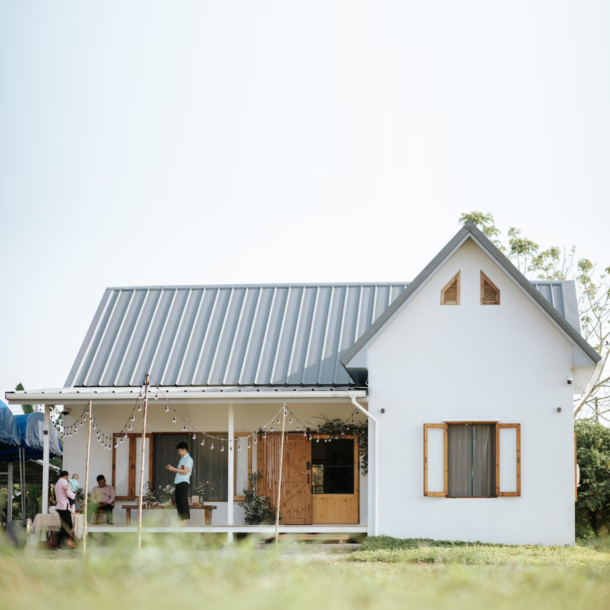 ตัวบ้านจะเป็นบ้านชั้นเดียว มีขนาดกำลังดี มีหลังคาทรงหน้าจั่วเป็นจุดดึงดูดสายตา แน่นอนว่า การตกแต่งจะมาในโทนสีขาวแบบอ่อนโยน เคียงคู่ไปกับสีน้ำตาลจากงานไม้ อันเป็นเอกลักษณ์ของบ้านสไตล์นี้