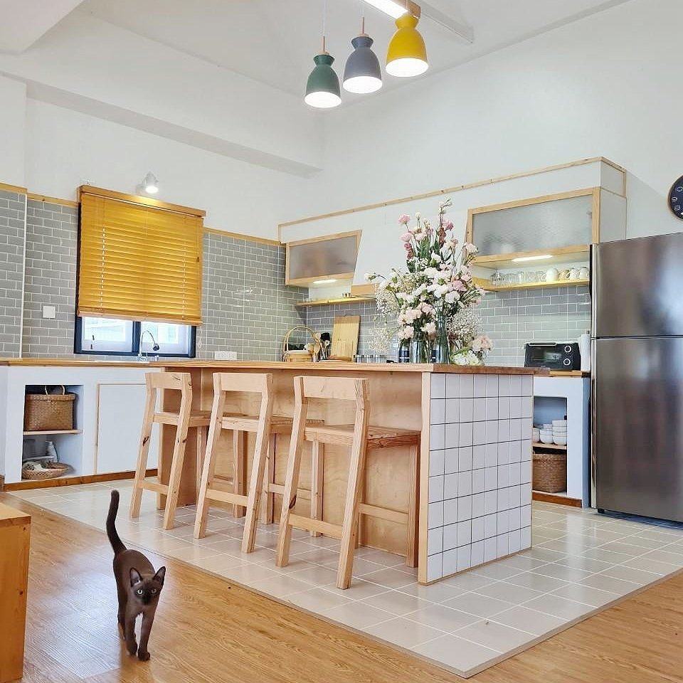 ภายในห้องครัวมีรายละเอียดการตกแต่งที่สวยงาม ทั้งจากองค์ประกอบงานไม้ ทั้งจากกระเบื้องแผ่นเล็ก ๆ ที่นำมาติดเพื่อให้ลวดลายที่มีความพิเศษ