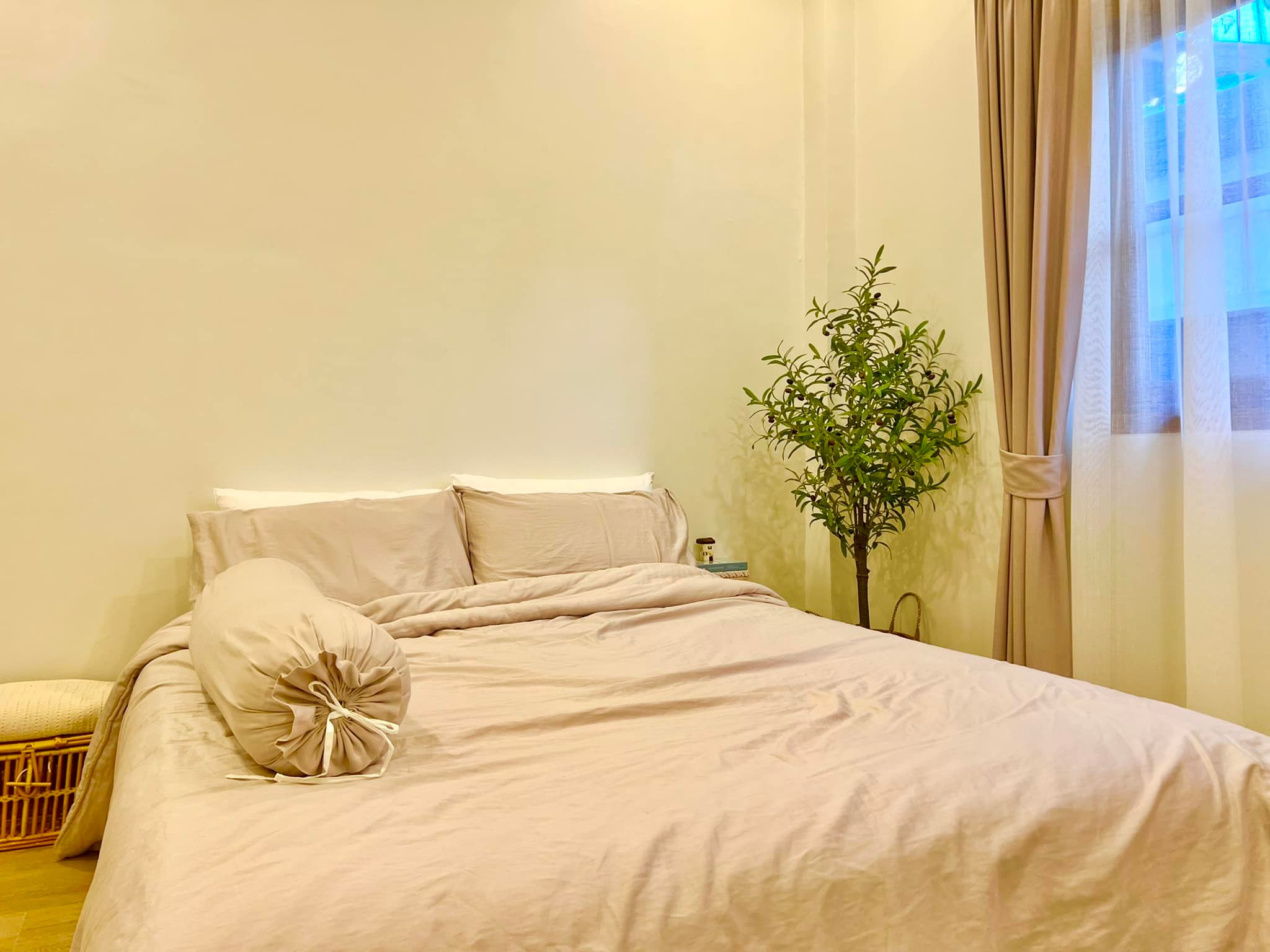 ห้องนอนมาในบรรยากาศการตกแต่งที่เรียบง่าย ให้โทนสีที่อบอุ่นและผ่อนคลาย เพื่อให้สมกับเป็นพื้นที่สำหรับพักผ่อนอย่างแท้จริง