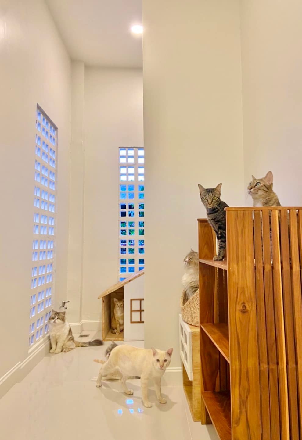 อีกจุดเด่นของบ้านหลังนี้ ด้วยความที่เจ้าของเป็นคนรักแมวมาก จึงได้ออกแบบห้องสำหรับน้องแมวเอาไว้เป็นพิเศษเลย น้อง ๆ จึงสามารถพักผ่อนได้อย่างสบายตัวเลยล่ะ
