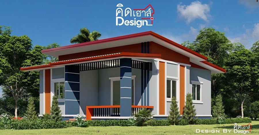 ลักษณะบ้านชั้นเดียว ออกแบบตัวบ้านด้วยรูปทรงสี่เหลี่ยมแบบโมเดิร์น ตัวบ้านมีขนาดเล็ก แต่เพียงพอสำหรับครอบครัวขนาดเล็ก หลังคาของบ้านเป็นหลังคารูปทรงเพิงหมาแหงนที่เข้ากับรูปทรงของบ้านได้เป็นอย่างดี ด้านการตกแต่ง ผนังภายนอกเลือกใช้สีฟ้าอ่อน แซมด้วยโทนสีน้ำตาล และส้มเพื่อเพิ่มลูกเล่น