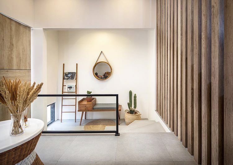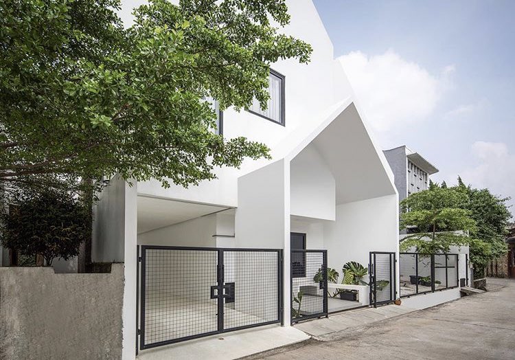 บ้านสไตล์นอร์ดิก ผลงานจากสถาปนิก Mande Austriono โดดเด่นด้วยตัวบ้านในโทนสีขาวสว่าง พร้อมกับการออกแบบยอดหลังคาทรงแหลมเอเฟรม 3 ยอดแบบเล่นระดับ เป็นบ้านพักอาศัยที่ให้ดีไซน์สวยงาม พร้อมที่จะมอบประสบการณ์สุดพิเศษในผู้พักอาศัย