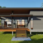 ลักษณะบ้านขนาดชั้นเดียว ออกแบบด้วยสไตล์แบบโมเดิร์น มีรูปทรงที่สวยงามทันสมัย ตัวบ้านออกแบบยกพื้นขึ้นสูง ในส่วนของหลังคาบ้านเป็นหลังคาแบบรูปทรงเพิงหมาแหงนที่เข้ากับรูปทรงของบ้านได้เป็นอย่างดี การตกแต่งบ้านนั้น ผนังภายนอกเลือกใช้โทนสีม่วงที่ให้ความสวยงามโดดเด่น