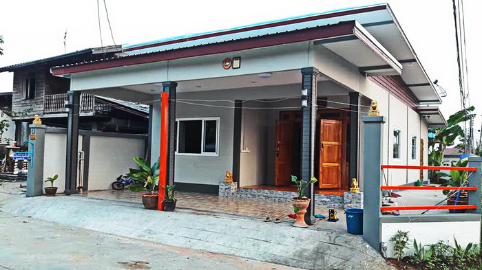 บ้านสไตล์โมเดิร์น ประกอบไปด้วย 2 ห้องนอน 1 ห้องน้ำ ห้องรับแขก ห้องครัว และเฉลียงหน้าบ้าน ใช้งบประมาณในการก่อสร้างราว 700,000 บาท (รวมรั้วบ้าน) อบอุ่นน่าอยู่ เหมาะสำหรับครอบครัวเริ่มต้น หากใครชื่นชอบก็ลองนำแบบบ้านหลังนี้กลับไปปรับใช้กันได้นะคะ